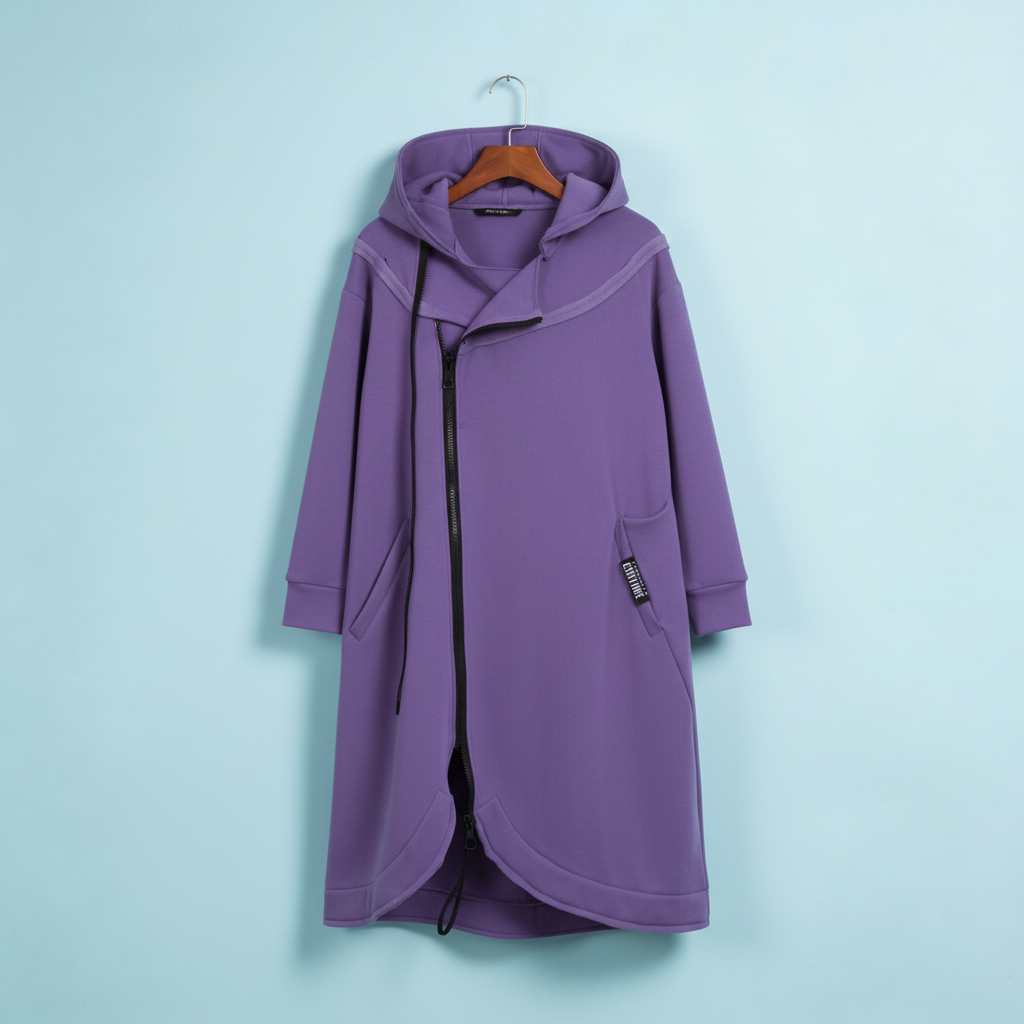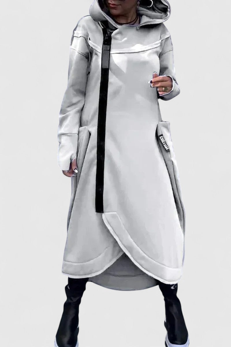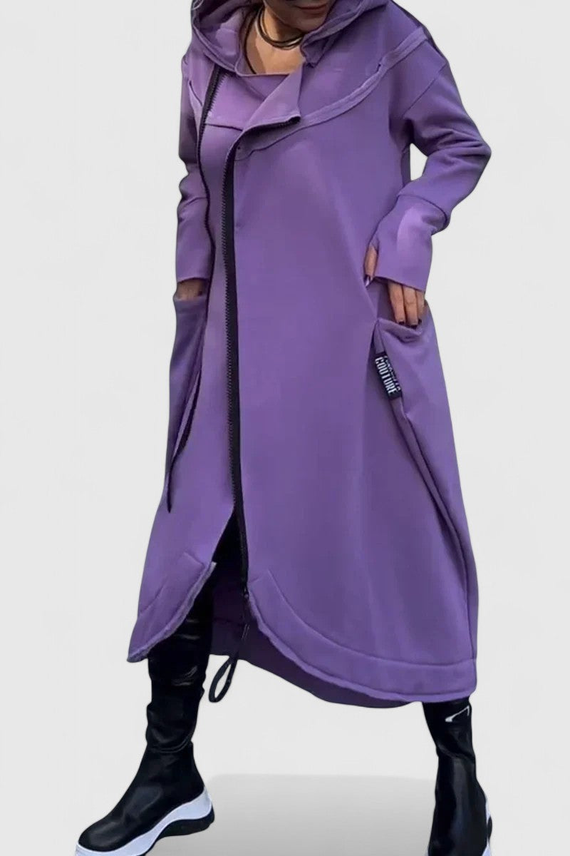 Zita | Hosszú kabát kapucnival cipzárral